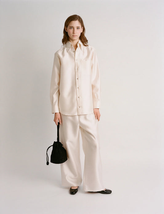 School shirt in white with lilac stripes