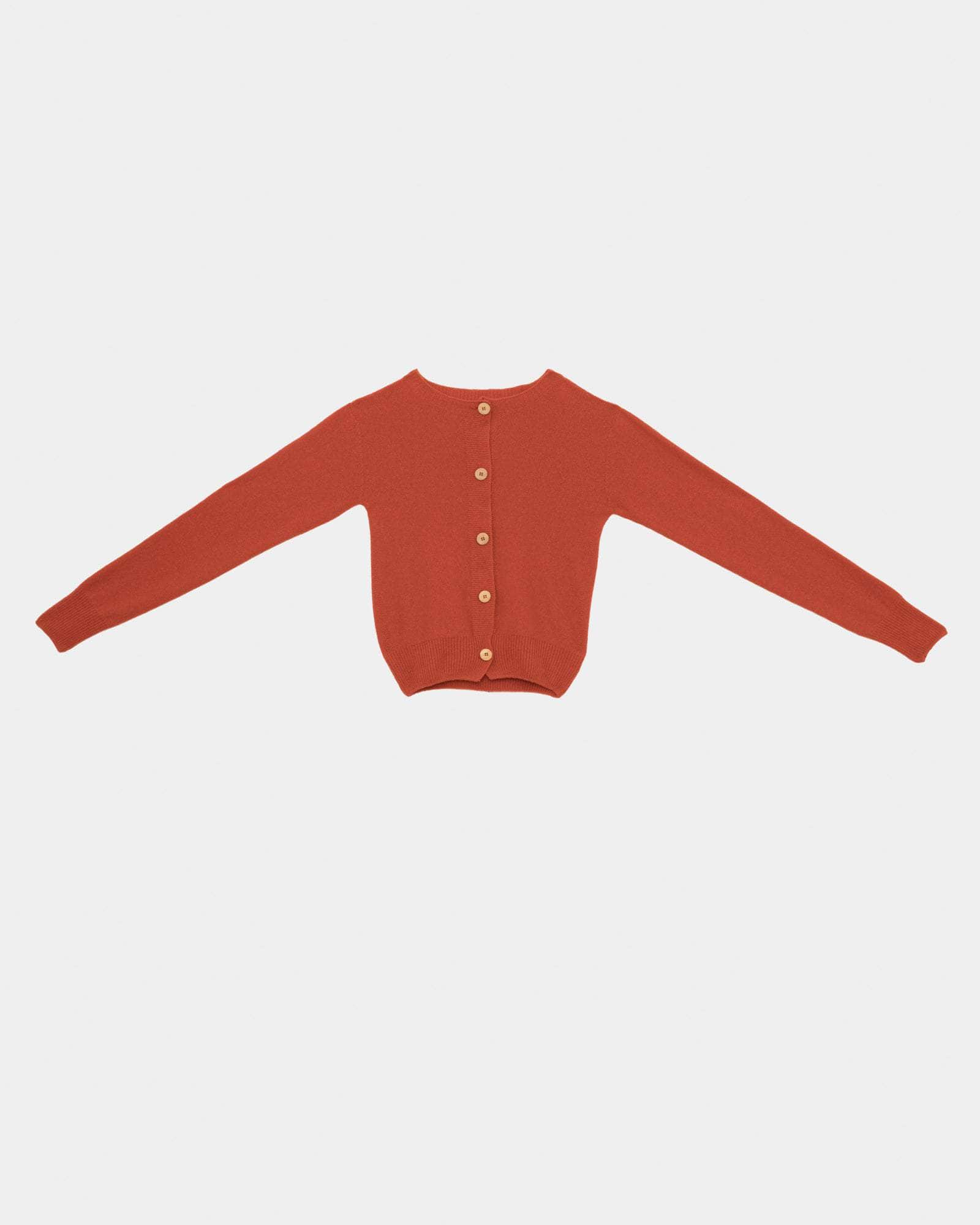 Baserange's cashmere Tier cardigan in red is a classic cardigan featuring a button down front and ribbed collar, cuffs and hem.